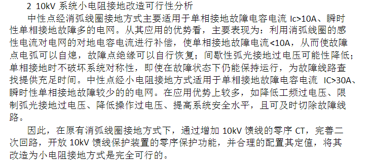 消弧線圈改小電阻接地方式為例,盡管小電阻接地方式在防范電網安全事故,